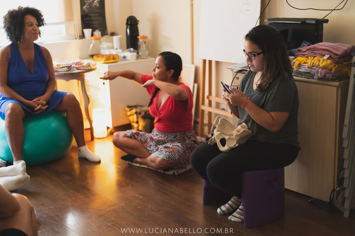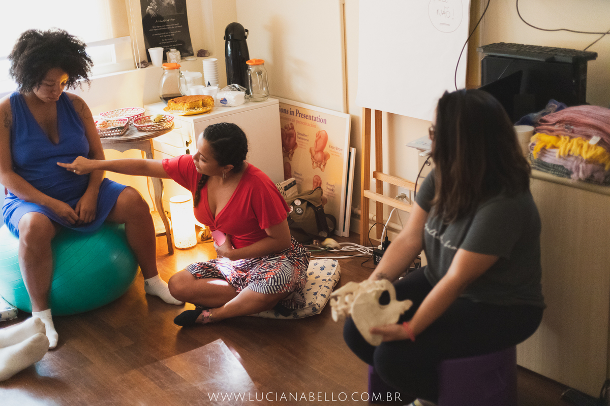 As meninas do coletivo são incríveis, Gabi, Lívia e Jéssica, profissionais competentes que explicam e ao mesmo tempo acolhem, sabe? Quando eu vi, já estava me sentindo como se nós, as gestantes e acompanhantes fôssemos uma grande família.